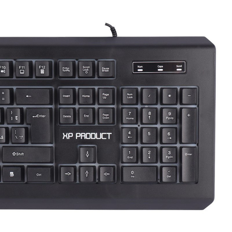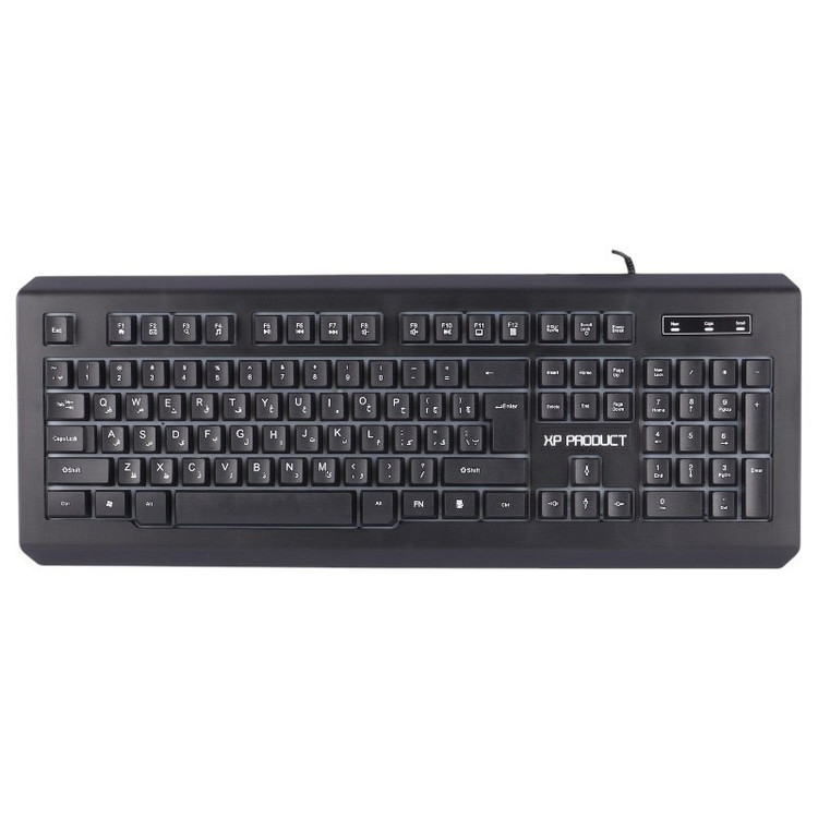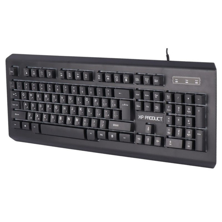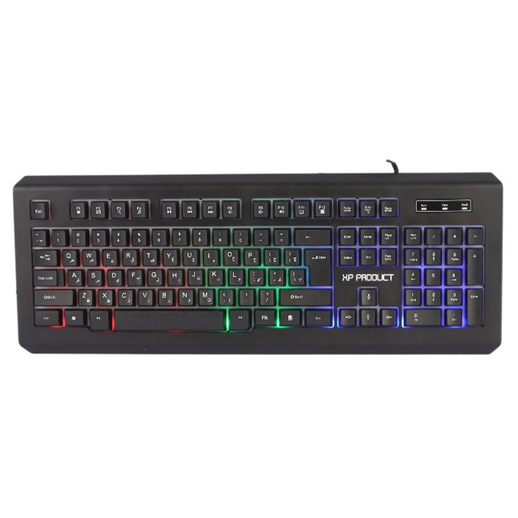 کیبورد با سیم مخصوص بازی ایکس پی پروداکت مدل XP-12100R یک مدل بسیار با کیفیت است که نحوه اتصال آن با سیم از طریق کابل متصل با رابط USB به طول تقریبی 140 سانتی متر با روکش پلاستیک است و بدنه ساخته شده از جنس پلاستیک مقاوم در برابر فشار و ضربه، دارای طول عمر 5 میلیون بار کلیک میباشد که مقدار بسیار فوقالعاده ای میباشد. این کیبورد دارای طراحی ارگونومیک جهت جلوگیری از خستگی دست میباشد و ، مقاوم در برابر نفوذ آب به داخل کیبورد است و برخوردار از 104 عدد کلید فیزیکی و حروف فارسی حک شده، با کلید های مولتی مدیا و FN میباشد کیبورد گیمینگ XP-Product XP-12100R دارای پس زمینه با نورپردازی RGB جهت ایجاد جلوه بصری زیبا در مکان های کم نور و تاریک است و موفق به کسب استاندارد های ایمنی و سلامت محصول شامل CE/ FCC/ RoHS شده است.