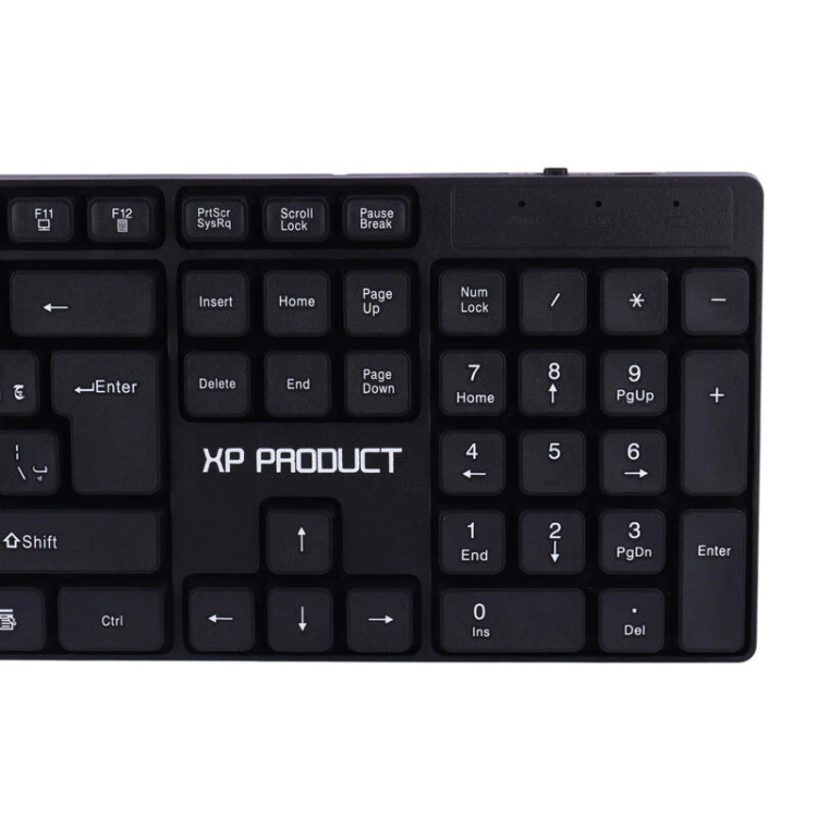 کیبورد و ماوس بی سیم ایکس پی-پروداکت مدل XP-W5900 با اتصال ۲.۴GHz، کیبورد ۱۰۴ کلیدی با حروف فارسی، ماوس اپتیکال ۳ کلید، طراحی ارگونومیک، باتری داخلی قابل شارژ از طریق درگاه USB-C و نصب Plug-and-Play؛ مناسب استفاده خانگی و اداری با برد تا ۱۰ متر.