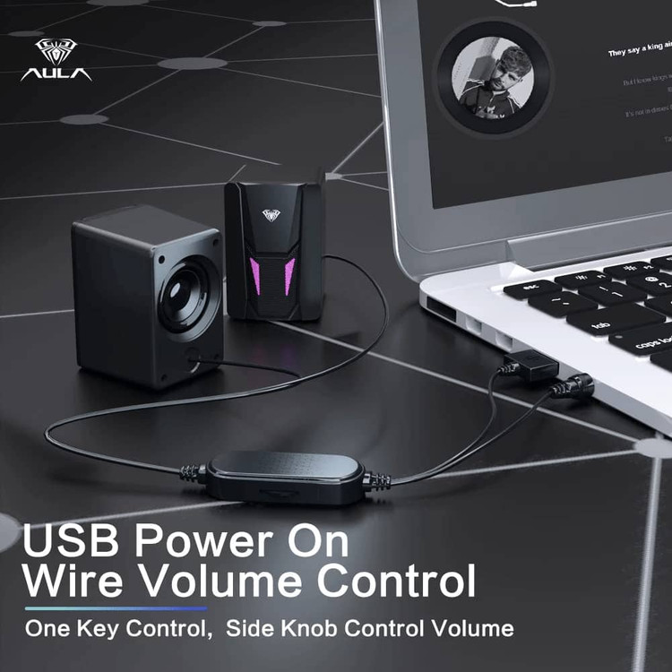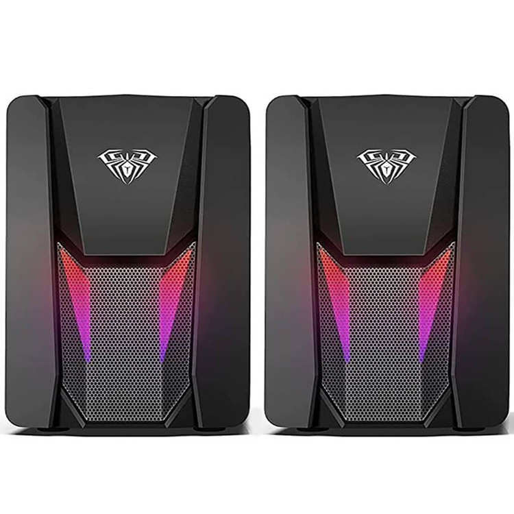 اسپیکر رومیزی آئولا مدل N-108 با صدای استریو شفاف، طراحی کامپکت و سبک، اتصال USB برای تأمین برق و جک ۳.۵ میلیمتری صدا؛ مناسب برای استفاده با کامپیوتر، لپتاپ و پخش موسیقی روزمره.