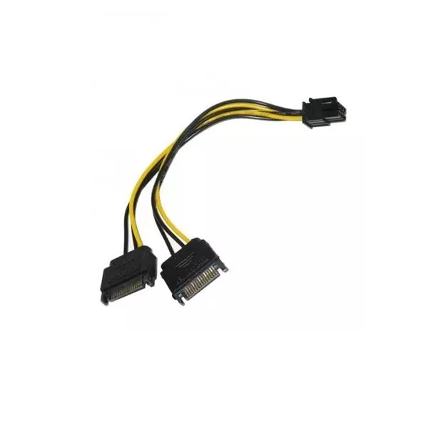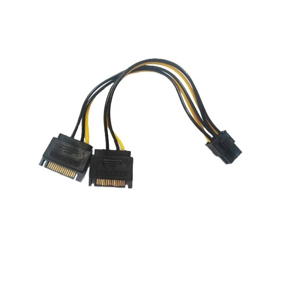 کابل تبدیل برق SATA به 6 پین کارت گرافیک مدل 2 به 1، مناسب برای تامین برق کارتهای گرافیک از دو پورت ساتا پاور؛ کیفیت ساخت بالا، نصب آسان و مناسب ارتقاء سیستمهای قدیمی.