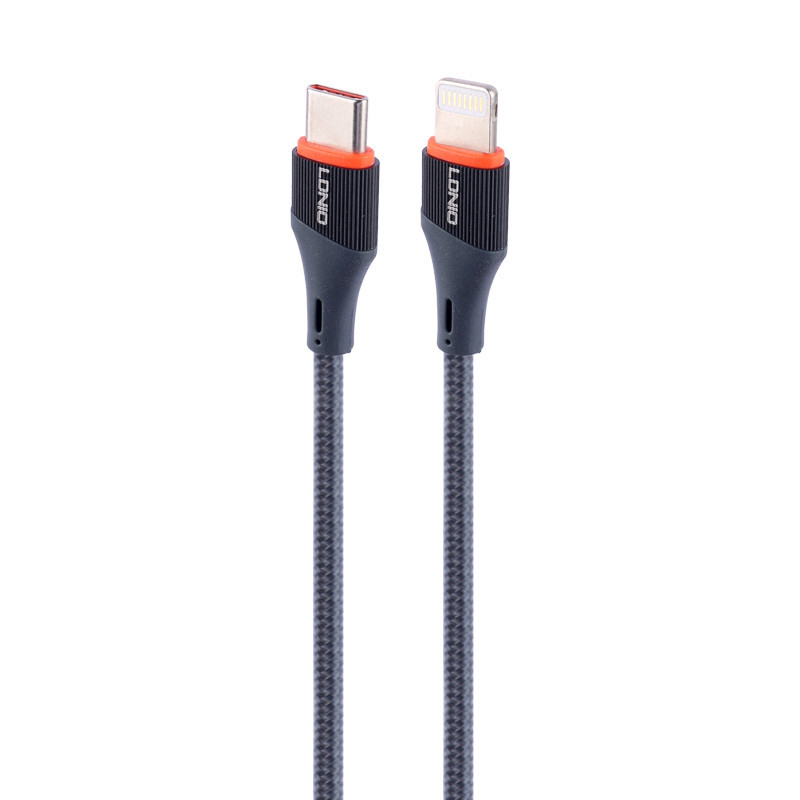 کابل شارژ LDNIO مدل LC631I با رابط Type-C به Lightning، پشتیبانی از فناوری فست شارژ PD و انتقال دیتا با سرعت بالا؛ مناسب برای شارژ سریع آیفون و آیپد با طراحی مقاوم و بادوام.