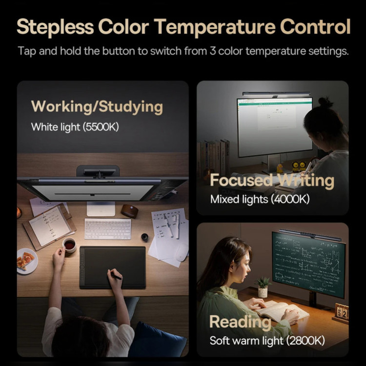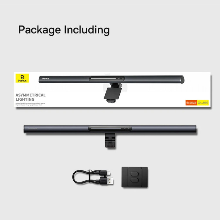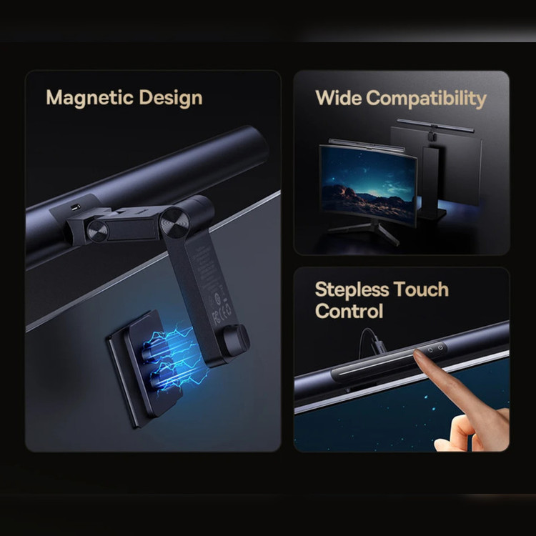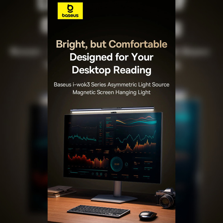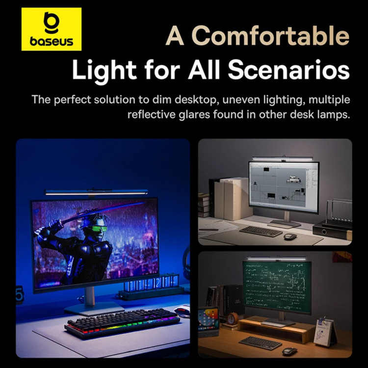 چراغ LED Baseus مدل I-WOK3 با طراحی نصب آسان روی مانیتور، نور یکنواخت و کاهش خستگی چشم؛ مناسب مطالعه، کار با کامپیوتر و محیطهای اداری با مصرف انرژی کم و طراحی مدرن.