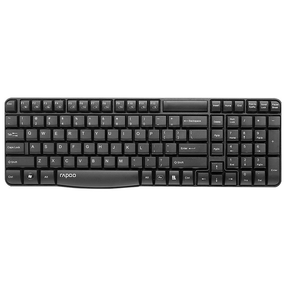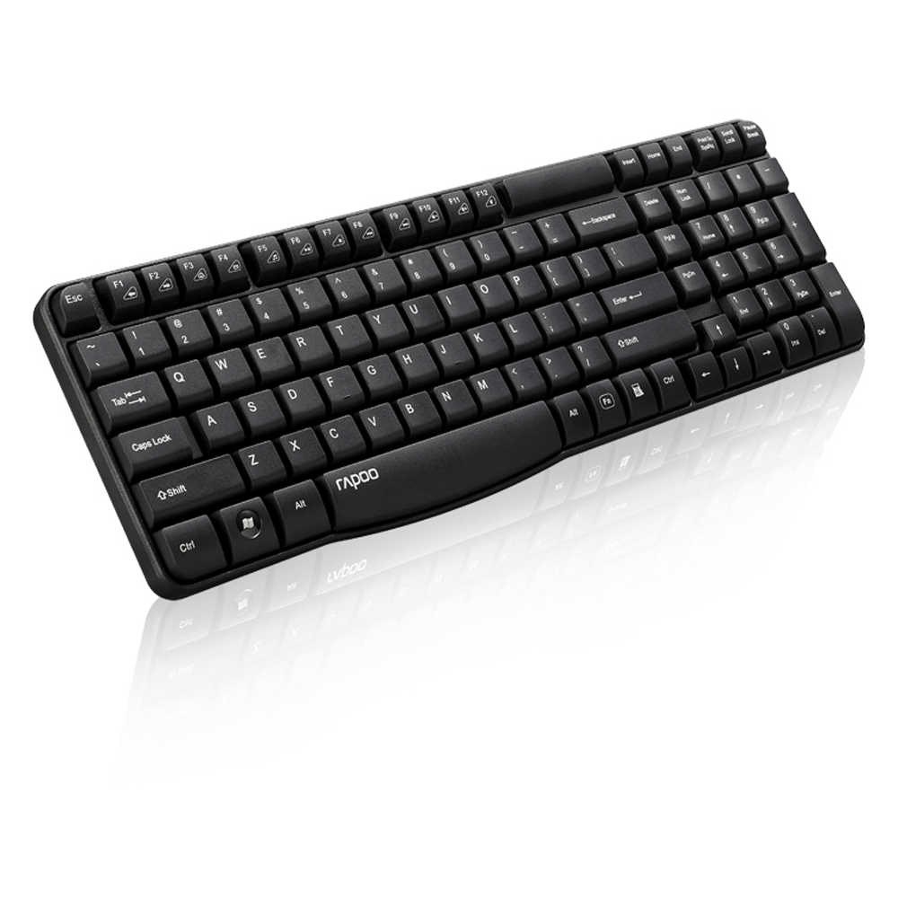 کیبورد Rapoo مدل E1050 با اتصال بیسیم پایدار، طراحی باریک و سبک؛ مناسب استفاده روزمره و اداری با کلیدهای نرم و کمصدا و عمر باتری طولانی برای کار مداوم.