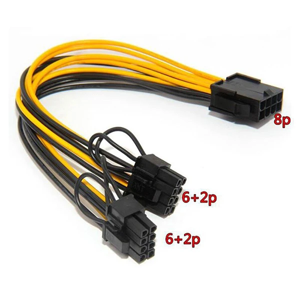 کابل تبدیل 8 پین به 6+2 پین مدل 1 به 2 مخصوص کارت گرافیک؛ مناسب برای تامین برق دو کارت یا افزایش سازگاری پاور با کارتهای گرافیکی قدرتمند، با کیفیت ساخت مقاوم و اتصالات مطمئن.