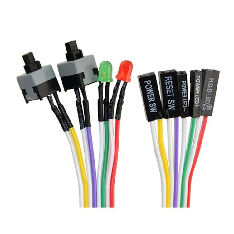 کلید پاور و ریست کیس کامپیوتر مدل 2KEY+2LED با چراغ LED هارد و پاور؛ مناسب نصب روی انواع کیسها، با کیفیت ساخت مقاوم و عملکرد دقیق برای کنترل آسان روشن و خاموش کردن سیستم.