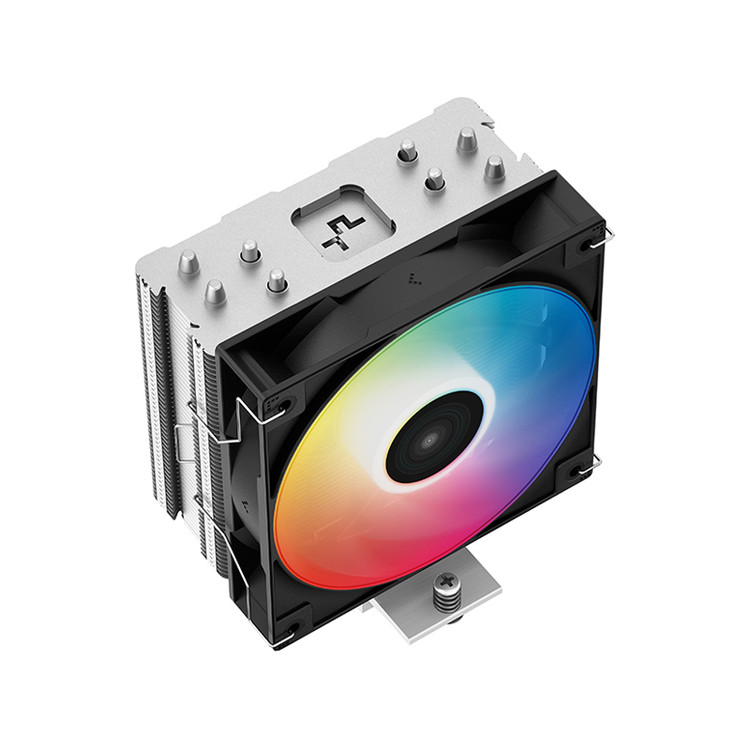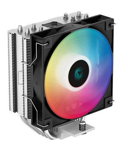 خنککننده DeepCool AG400 LED با فن ۱۲×۱۲×۲٫۵ سانتیمتر، سرعت ۵۰۰ تا ۲۰۰۰ دور بر دقیقه، جریان هوا ۷۵٫۸۹ CFM، نور RGB و چهار لوله گرمایی ۶ میلیمتری؛ پشتیبانی از سوکتهای Intel و AMD، عملکرد بیصدا و طراحی جمعوجور مناسب انواع کیسها.