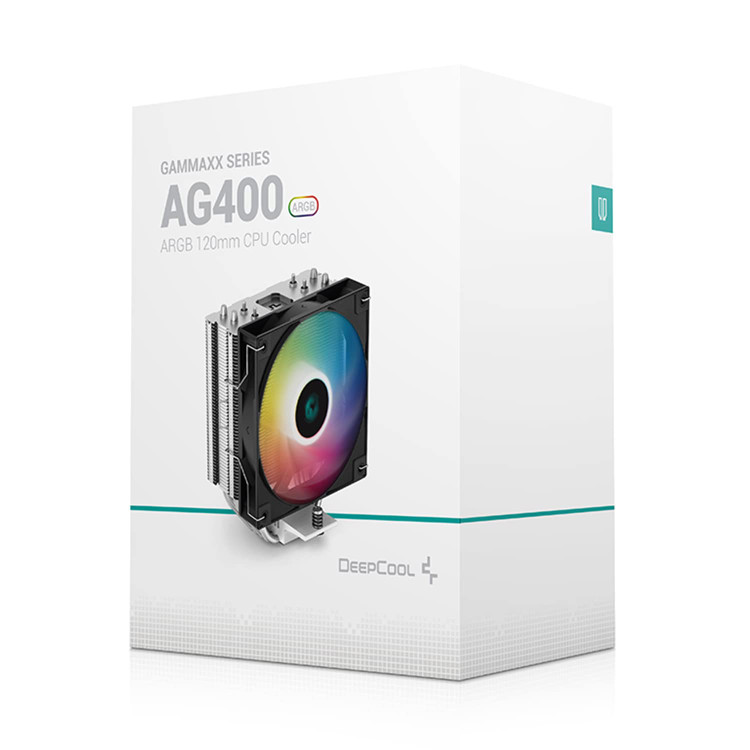 خنککننده DeepCool AG400 ARGB با فن ۱۲ سانتیمتری، نورپردازی ARGB قابل تنظیم، چهار لوله حرارتی مسی ۶ میلیمتری، طراحی تکبرج و سطح صدای پایین؛ مناسب پردازندههای نسل جدید با پشتیبانی از سوکتهای Intel و AMD.