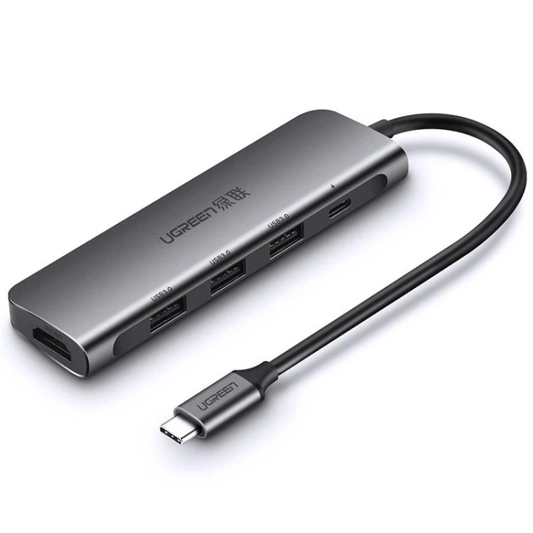 هاب UGREEN مدل CM136-50209 با طراحی جمعوجور آلومینیومی، شامل ۱ پورت HDMI با پشتیبانی حداکثر 4K@30Hz، ۳ پورت USB-A 3.0 با سرعت تا 5Gbps و پورت USB-C PD تا 100 وات؛ مناسب لپتاپ، تبلت و گوشیهای با پورت Type-C و ایدهآل برای کار، بازی و تولید محتوا.