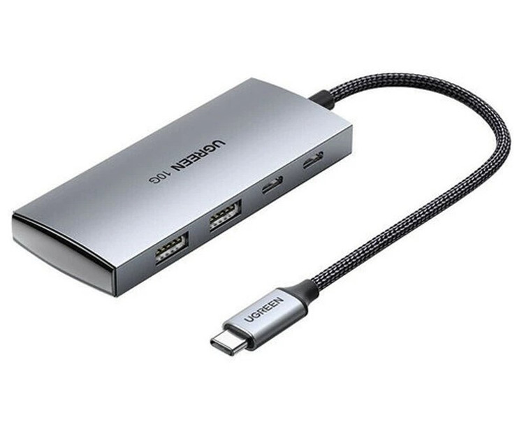 هاب UGREEN مدل CM480-30758 تبدیل پورت USB-C به ۲ پورت USB-C و ۲ پورت USB-A با سرعت انتقال داده تا 10 Gbps؛ همه در بدنه آلومینیومی باریک و کابل بافتهشده. مناسب لپتاپ، مکبوک، آیپد، نوتبوک و دستگاههای دارای USB-C.