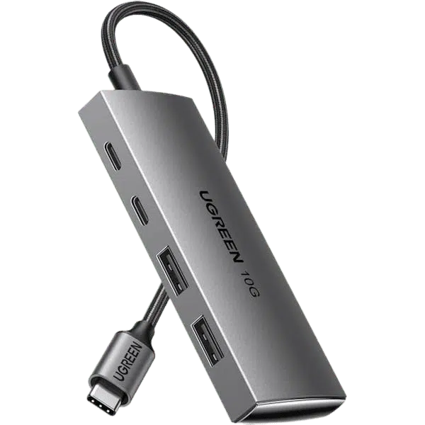 هاب UGREEN مدل CM480-30758 تبدیل پورت USB-C به ۲ پورت USB-C و ۲ پورت USB-A با سرعت انتقال داده تا 10 Gbps؛ همه در بدنه آلومینیومی باریک و کابل بافتهشده. مناسب لپتاپ، مکبوک، آیپد، نوتبوک و دستگاههای دارای USB-C.