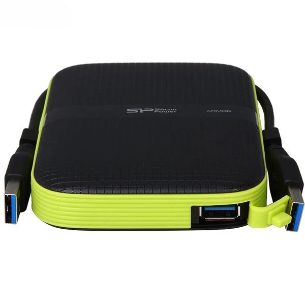 هارد اکسترنال Silicon Power Armor A60 2TB با بدنه مقاوم، استاندارد نظامی ضد شوک و مقاومت در برابر پاشش آب (IPX4)، رابط USB 3.2 Gen 1 (حداکثر تا ۵ Gbps)، طراحی قابل حمل و کابل جمعشونده — انتخابی ایدهآل برای آرشیو فیلم، عکس، بکاپ و استفاده در مسیر.